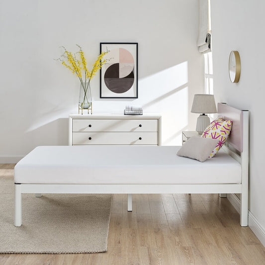 Twin Metal Platform Bed Frame/ Wooden Slat Support / with Headboard, mattress not included