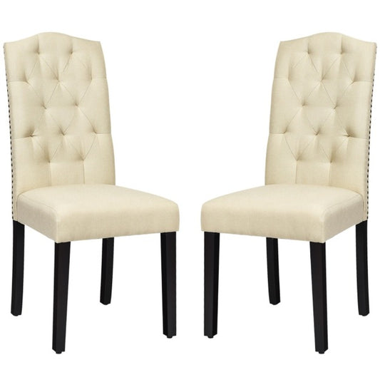 Set of 2 Tufted Dining Chair with Rubber Wooden Leg