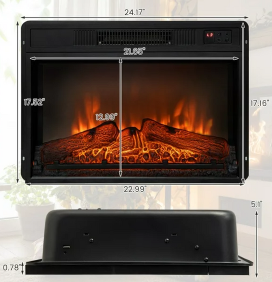 23" Electric Fireplace Insert Heater w/ Log Flame Effects Remote Control 1400W