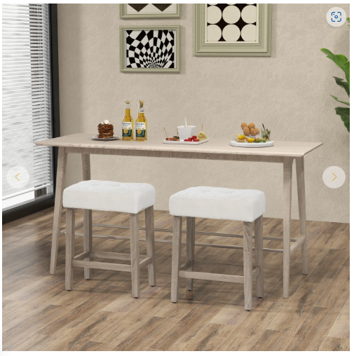 Set of 2 - Modern Counter Height Bar Stools with Rubber Wood Legs, BEIGE
