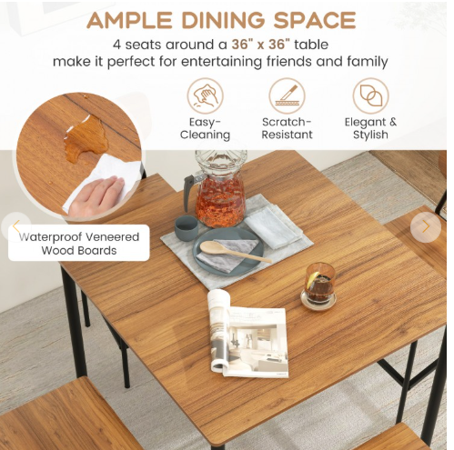● The table and 4 chairs provide ample dining space for family or friends gatherings