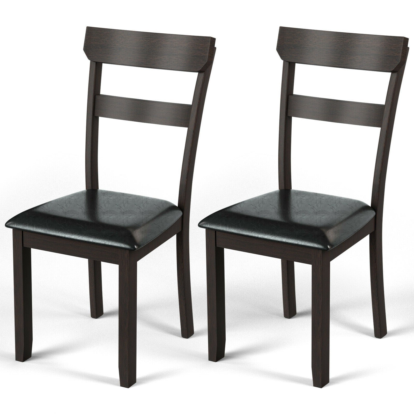 Set of 2 Dining Chairs With Rubber Wood Frame and Upholstered Faux Leather Seat