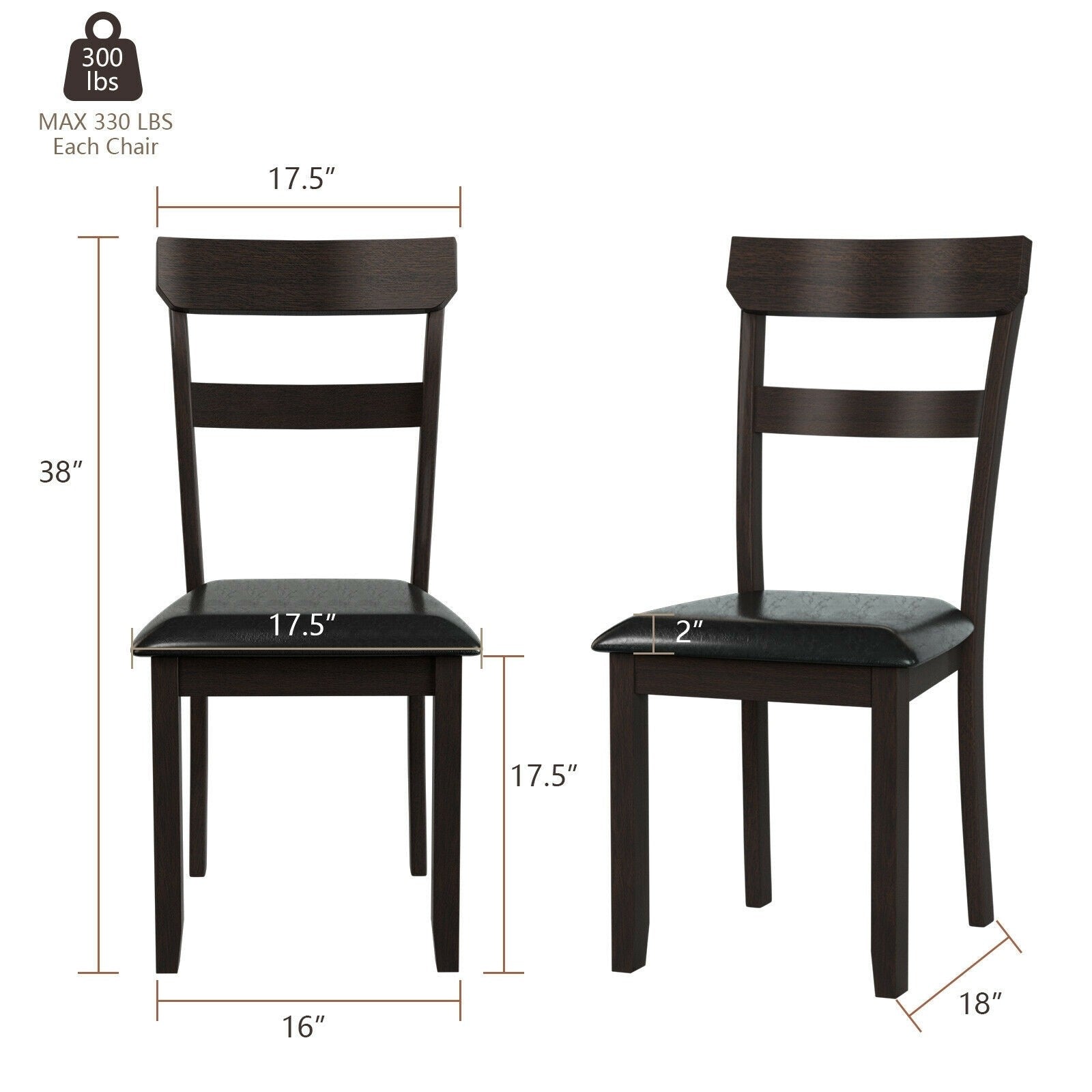 Set of 2 Dining Chairs With Rubber Wood Frame and Upholstered Faux Leather Seat. assembled