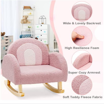 ● Perfect Gift and Wide Use: This upholstered kids rocking sofa has a cute appearance that appeals to little ones a lot. And the multifunctional design is ideal for reading playing eating or resting. Thus you can place this toddler rocking sofa in the children's room bedroom day-care center etc.